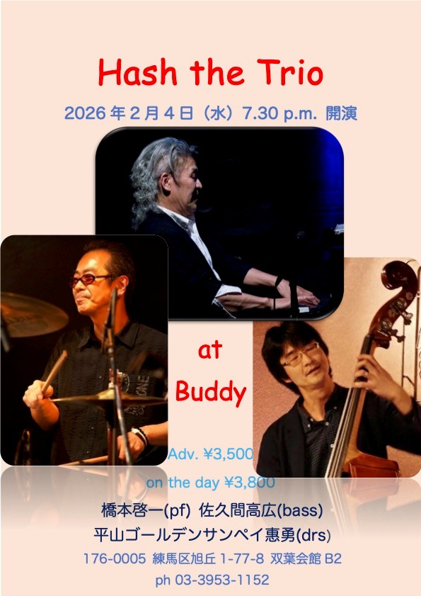 ’15年~、The Hash Band(橋本啓一pf、吉永絢香sax、中津裕子bass、平山サンペイ惠勇drs)