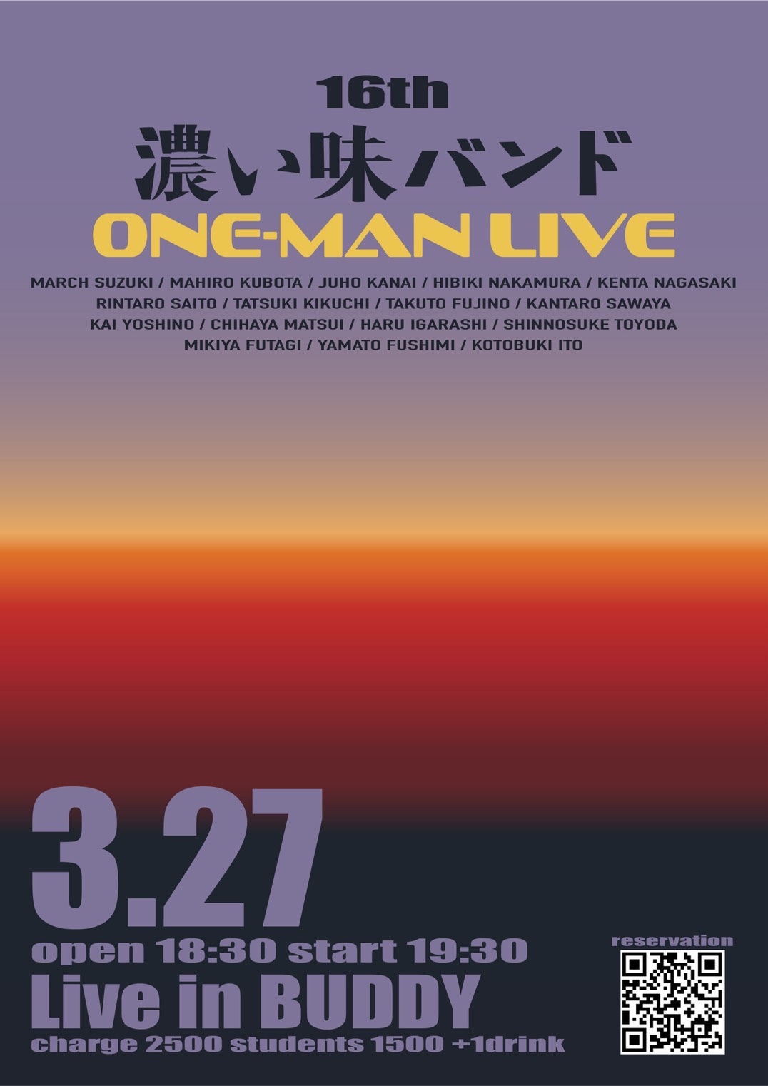 16代目濃い味バンドです!待望のワンマンライブです!ぜひ見に来てください!